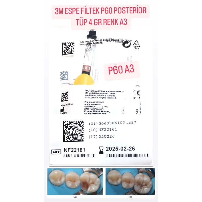 Filtek p60 posterior restoratif sistem - refiller: 1 şırınga 4 g, renk a33m espe filtek p60 posterior restoratif tüp 4 gr renk a3 Detaylar :Posterior bölgede...