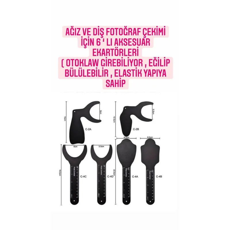 Ağiz ve diş fotoğraf çekimi için 6'li aksesuar ekartörleriOtoklaw girebilir Eğilip bükülebilirElastik yapiya sahiptir.