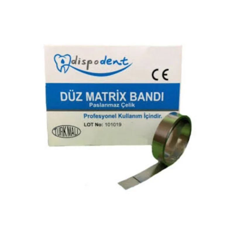 Dispodent düz matrix bandi 1 metre uzunluğunda Stok miktari ve güncel fiyat için lütfen irtibata geçiniz !No: 4-5-6-7 mevcuttur 1 metreli rulolar halinde üre...