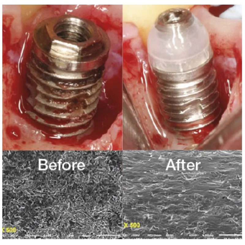 Implant yüzey aralari temizleme firçasiPaslanmaz çelik mil ile yüksek kaliteli titanyum kıllardan yapılmıştır;Peri-implantit nedeniyle kemik kusurlarında tit...