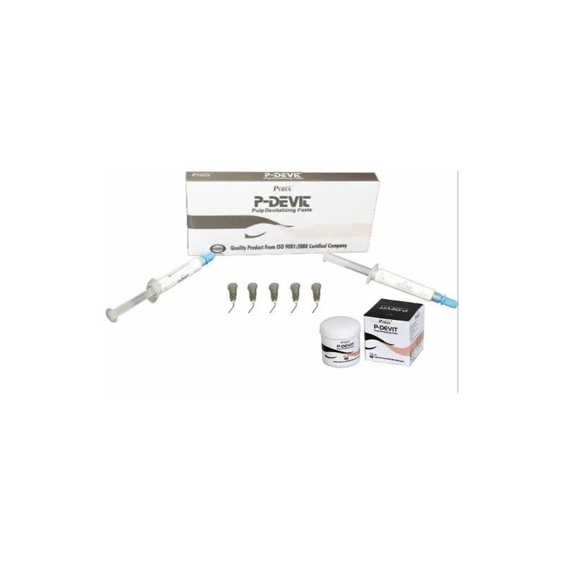 P-devit, aktif devitalizer olarak para formaldehit içeren güçlü bir pulpa devitalizerdir. lignokain içermesi nedeniyle hızlı etki eden ve ağrı kesici macundur.