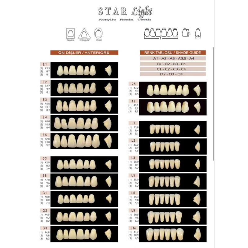 Star Light Özel Sertleştrilmiş 2 Renkli Akrilik Diş 28 ' Lik